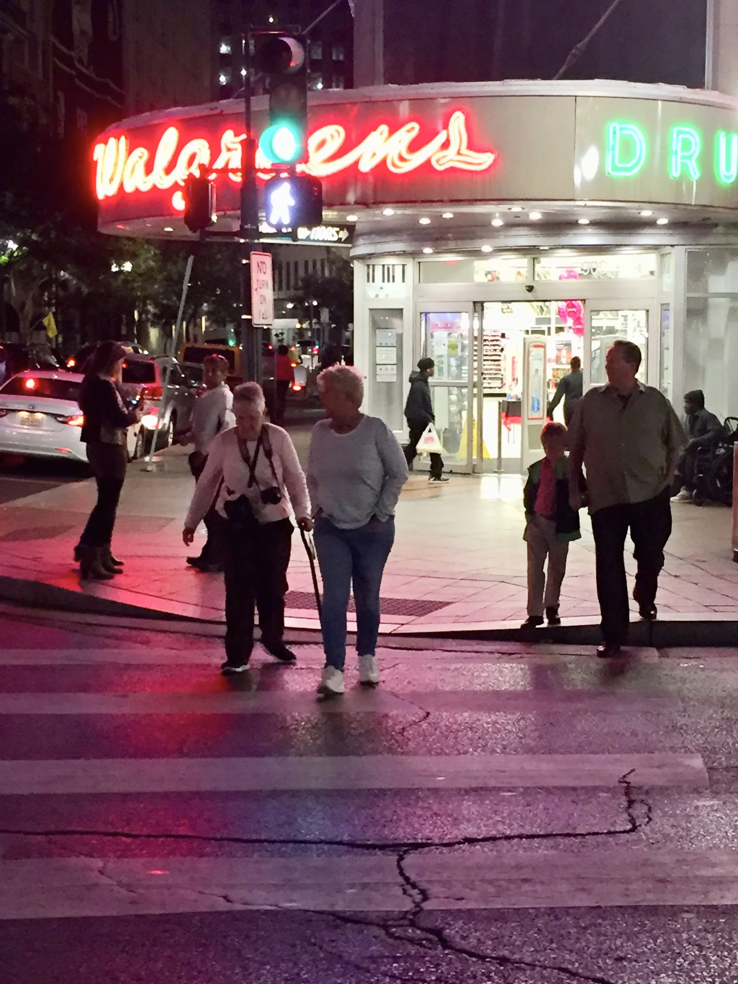 Looking for food and checking out Christmas lights
